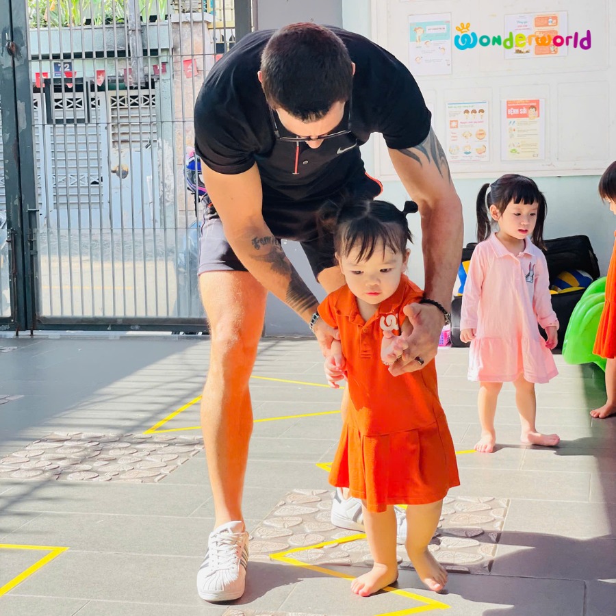 Tại Wonderworld, các con không chỉ học mà còn vận động thỏa thích với những trò chơi thể chất đầy năng lượng. Nhảy, chạy, leo trèo, thậm chí thi đua nhỏ với bạn bè giúp con rèn luyện sức khỏe, phát triển sự linh hoạt và tự tin.